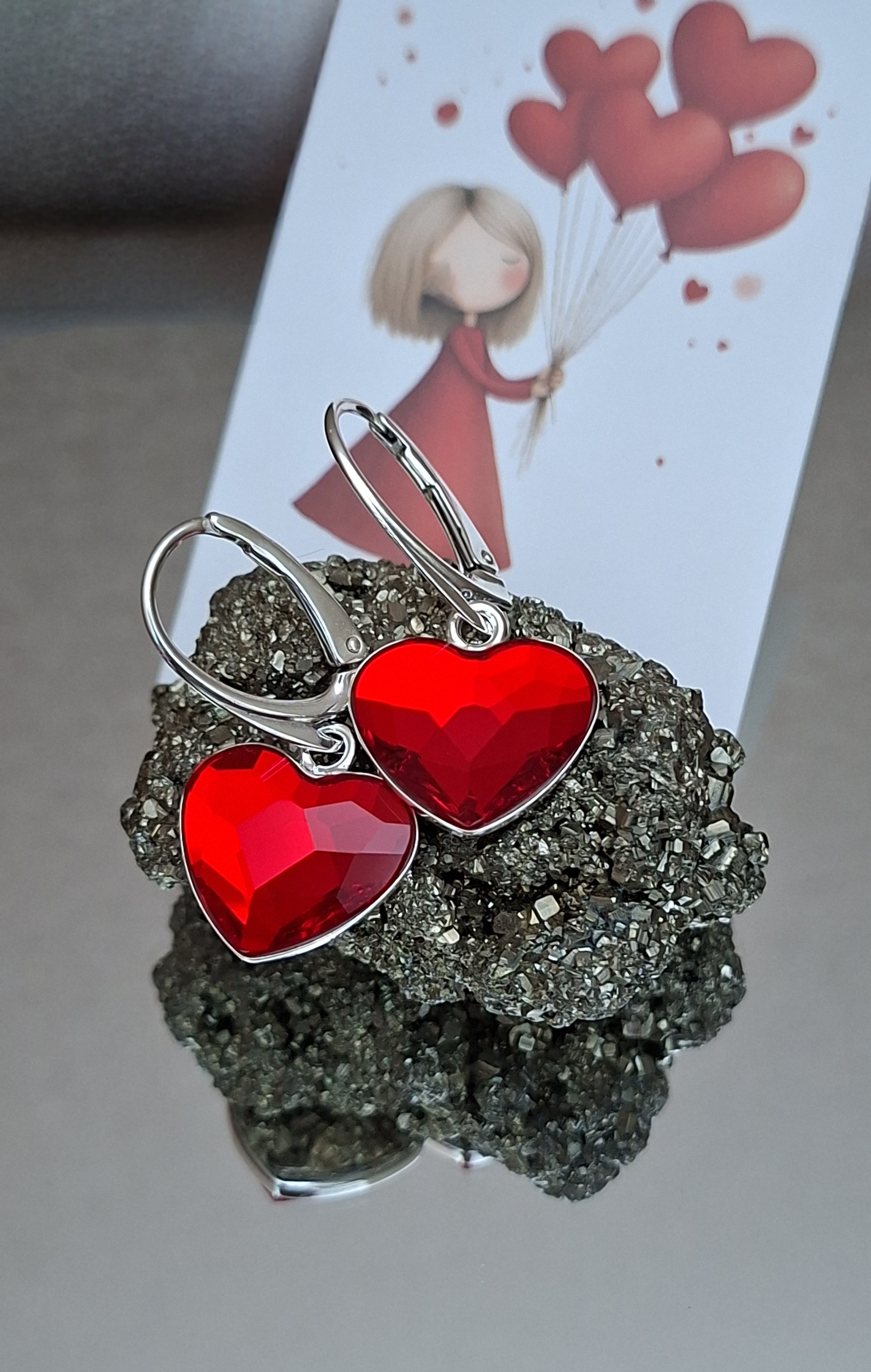Úvod » Fotogaléria » Srdiečkové visiace náušnice - červené
